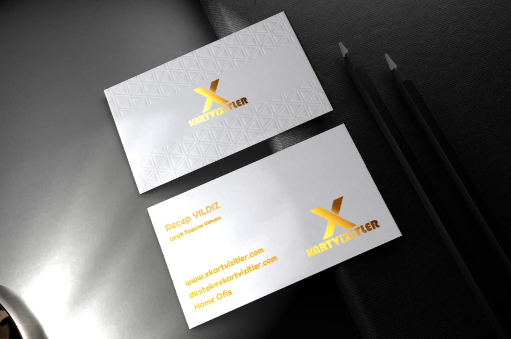 Fantazi Kartvizit Beyaz Kağıt – Yaldız Baskı + Ezme Baskı – Dubleks Sıvama