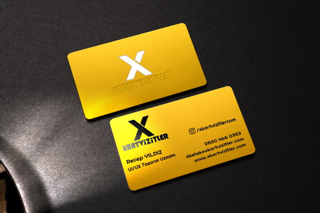 Fantazi Sarı Kartvizit – Lazer Kesim ve Parlak Siyah Yaldızlı Beyaz Ezme