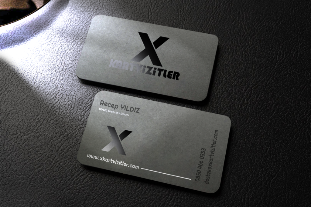 Fantazi Gri Kartvizit – Siyah ve Gümüş Yaldızlı Lüks Tasarım